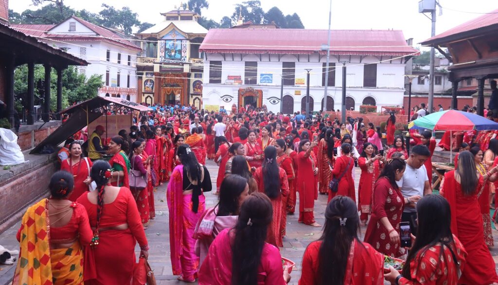 पशुपतिमा तीजको हर्षोल्लासः आऊ न, सेल्फी, रिल र एउटा टिकटक खिचौं
