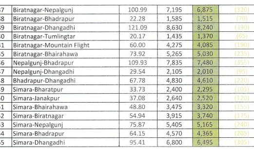 भैरहवा विमानस्थलबाट हुने उडानहरूमा भैरहवा–भद्रपुर रुटमा २६५ रुपैयाँ र भैरहवा–धनगढीमा १८५ रुपैयाँले कमी आएको छ। यस्तै, जनकपुर र विराटनगरजस्ता तराईका विमानस्थलहरूबाट लामो दूरीका उडानहरूमा पनि ठूलो राहत पुगेको छ।