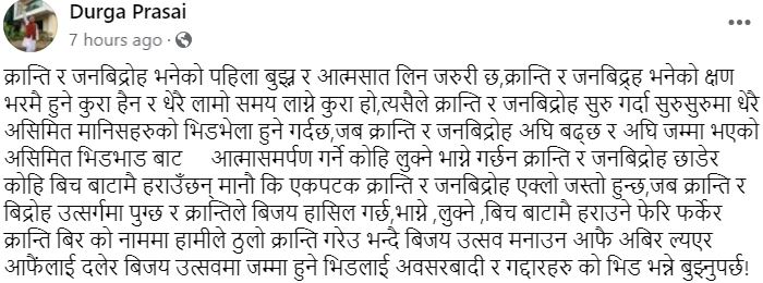 प्रसाईले सामाजिक सञ्जालमा लेखेका छन् ।