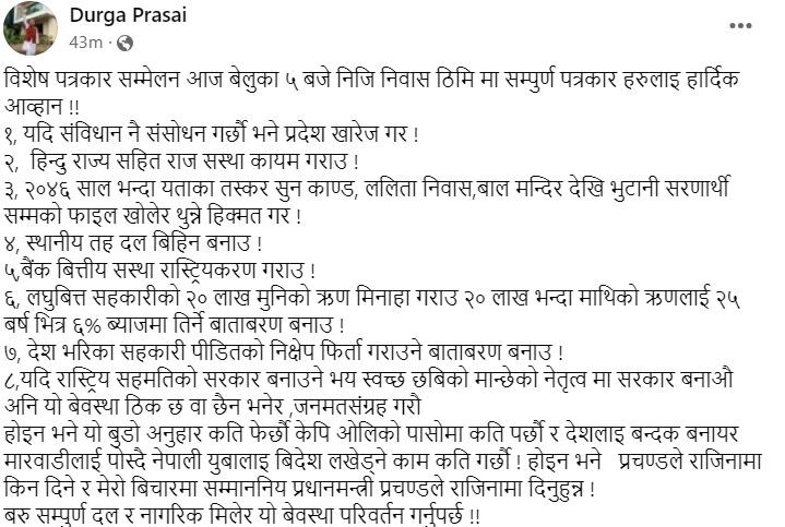 प्रसाईले सार्वजनिक गरेका भनाइ