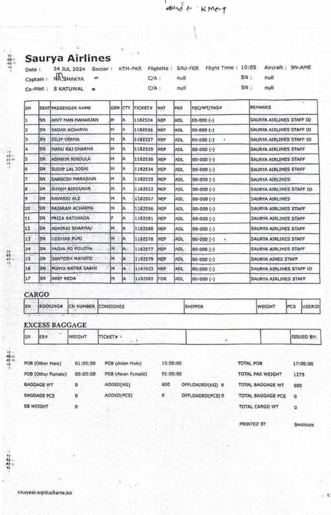 सौर्य एयरलाइन्सले दिएको जहाजमा रहेका यात्रुहरुको विवरण यसप्रकार रहेको छ ।